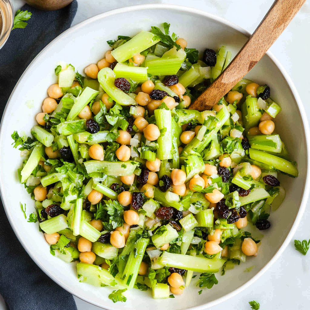 Celery Salad with Chickpeas and Raisins