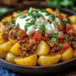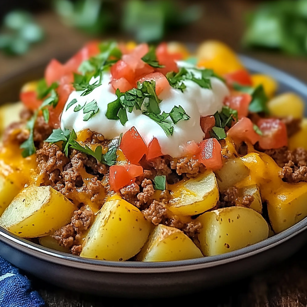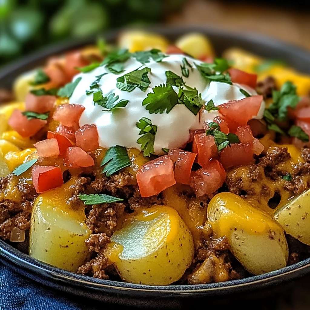 A dish that combines the comforting flavors of tacos and baked potatoes, Cheesy Taco Potatoes are perfect for any occasion. Whether it’s a family dinner, game day, or a casual gathering with friends, this recipe delivers deliciousness in every bite. The creamy cheese, seasoned beef, and vibrant toppings create a satisfying meal that everyone will love.