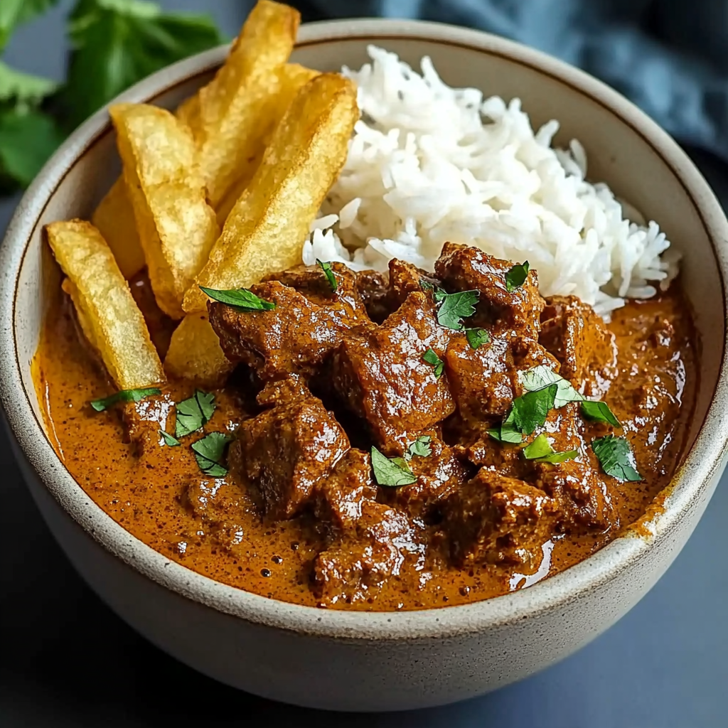 • Steamed jasmine or basmati rice pairs perfectly, soaking up the creamy sauce and balancing the spices.