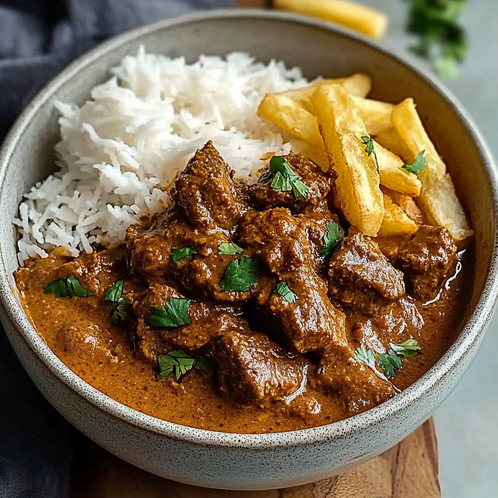 Enjoy your Coconut Curry Beef served with rice or naan for a complete meal!