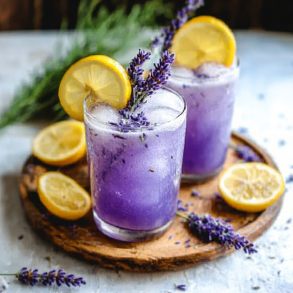 • Lemon slices and lavender sprigs (for garnish)
