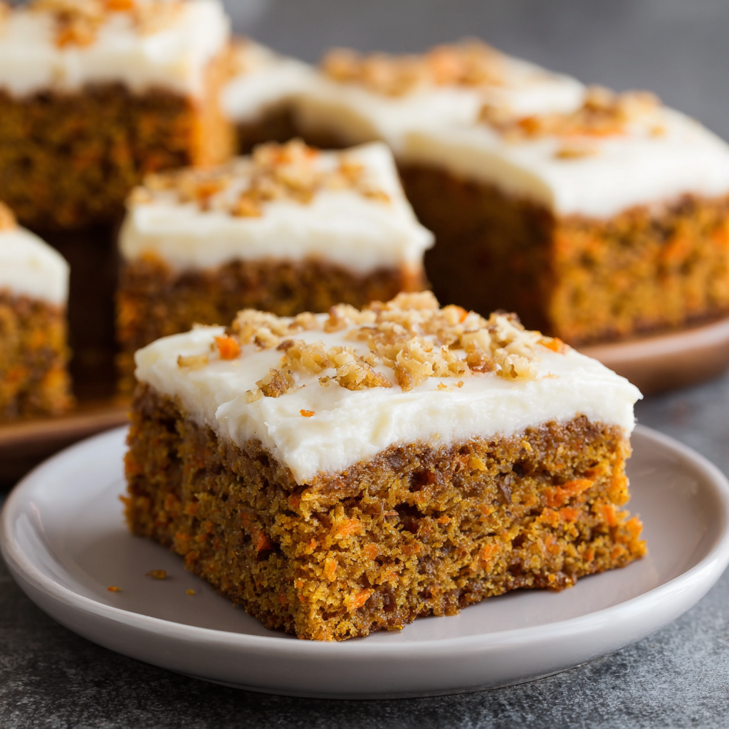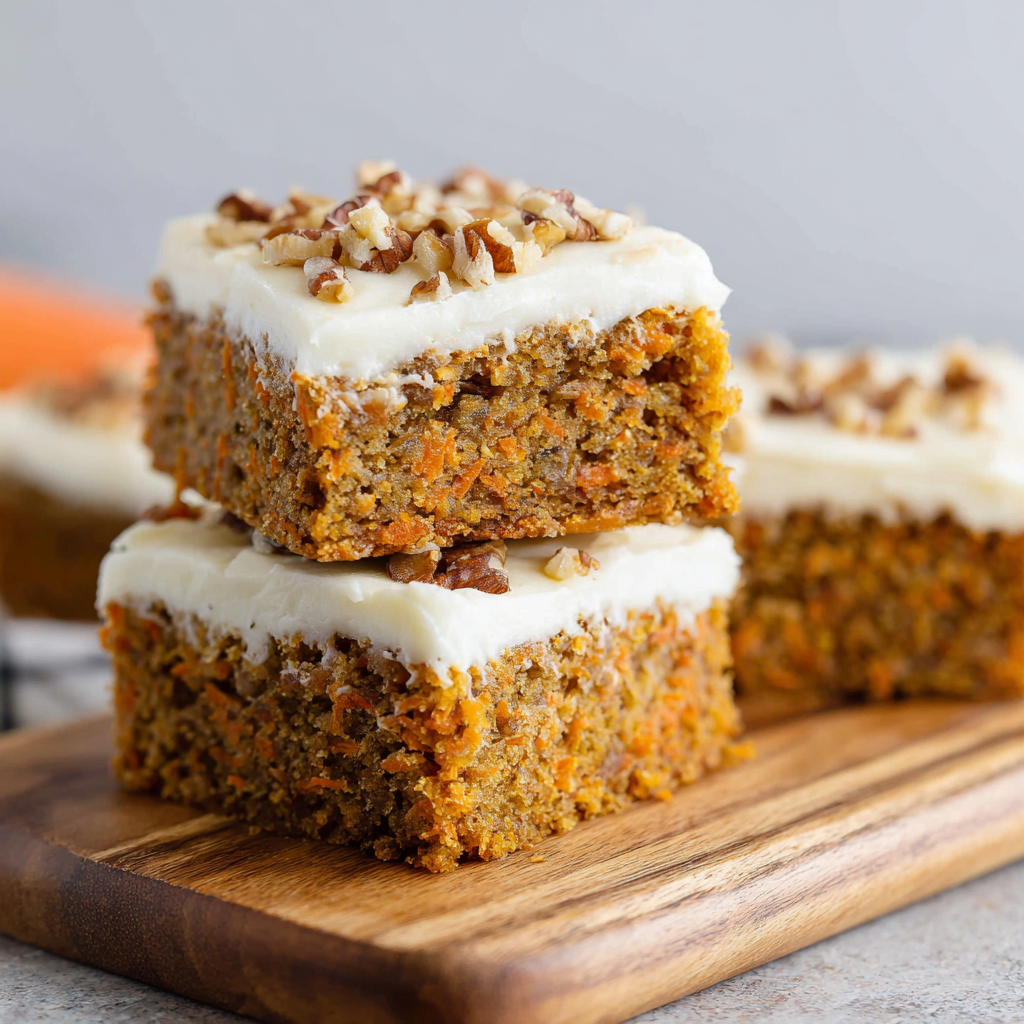 These Decadent Carrot Cake Bars are soft, moist, and perfectly spiced, topped with rich cream cheese frosting. An easy dessert bar recipe ideal for holidays, potlucks, and everyday baking.