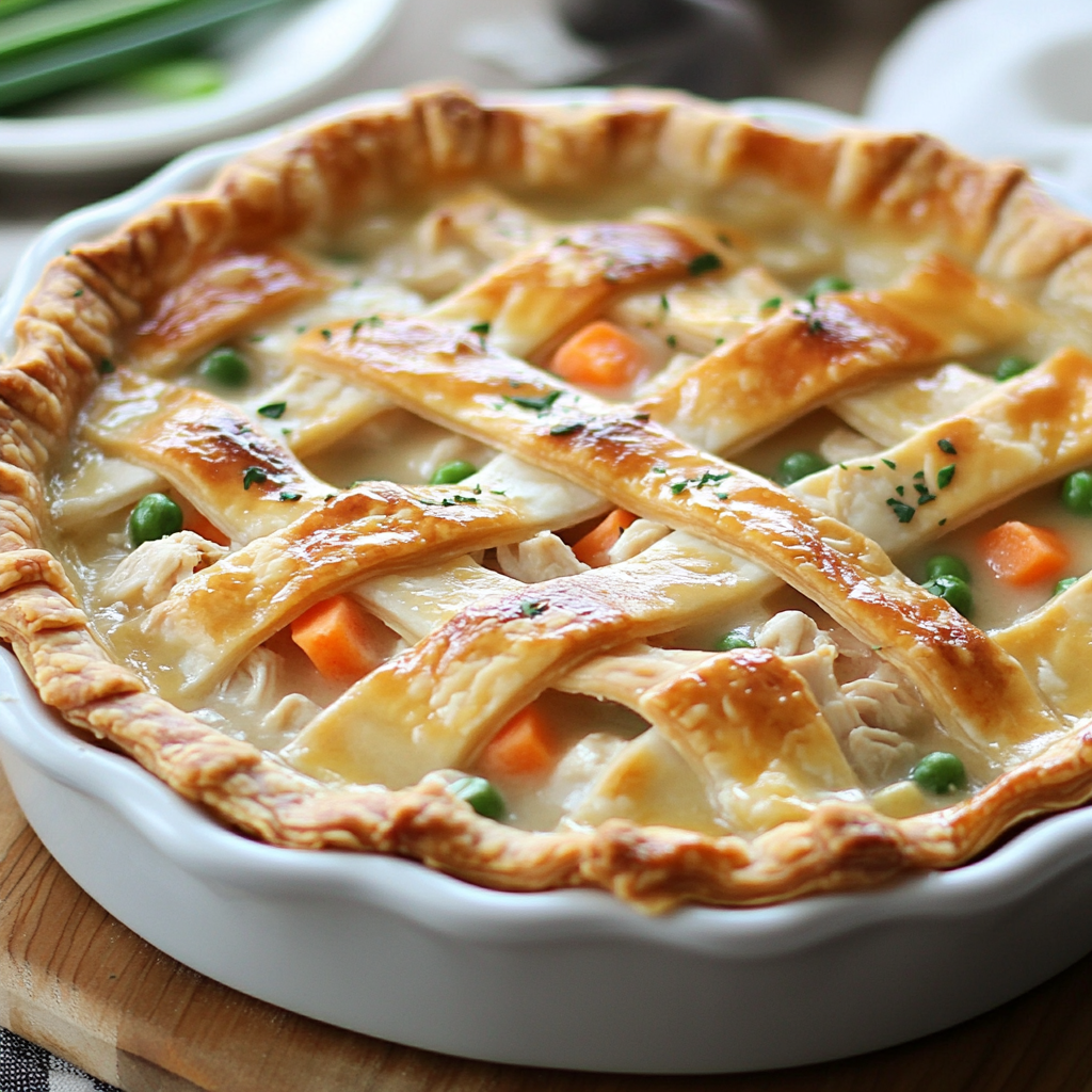 This recipe uses pre-made pie crusts and rotisserie chicken, making preparation fast and hassle-free.