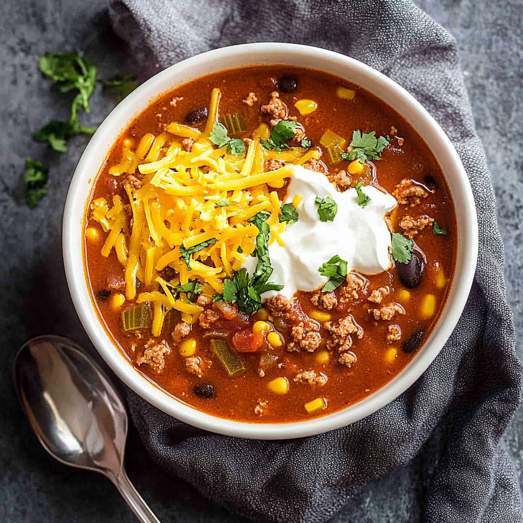 This Easy Taco Soup is full of flavor, hearty, and perfect for any night of the week! With a cooking time of just 30 minutes or the convenience of a slow cooker, you can enjoy a delicious meal any day. This recipe stands out with its savory blend of spices and wholesome ingredients, making it an ideal choice for family dinners, potlucks, or cozy nights in.