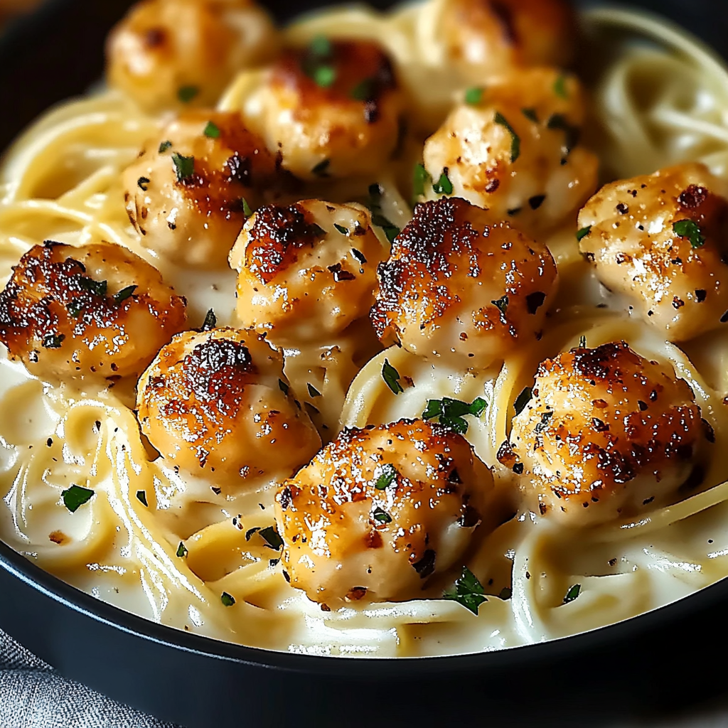 Garlic Butter Chicken Bites with Creamy Parmesan Pasta