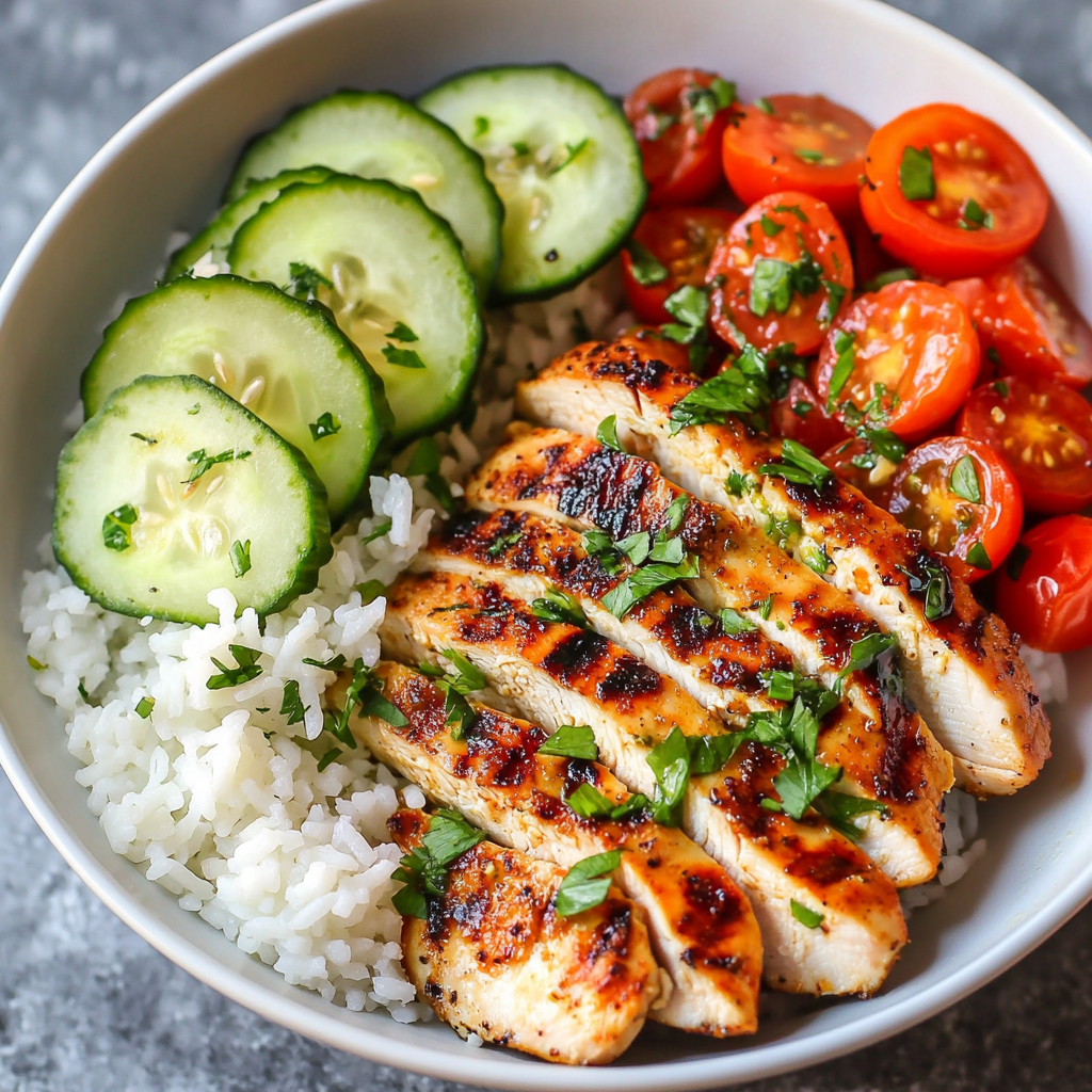 Grilled Chicken with Rice and Fresh Tomato-Cucumber Salad is a delightful dish that combines the smoky flavors of grilled chicken breast with fluffy rice and a refreshing salad. Perfect for busy weeknights or weekend gatherings, this recipe is not only quick to prepare but also offers a satisfying balance of flavors and textures. The vibrant salad adds freshness, while the protein-packed chicken keeps you feeling full. With its easy preparation and adaptability, this meal is sure to become a family favorite.
