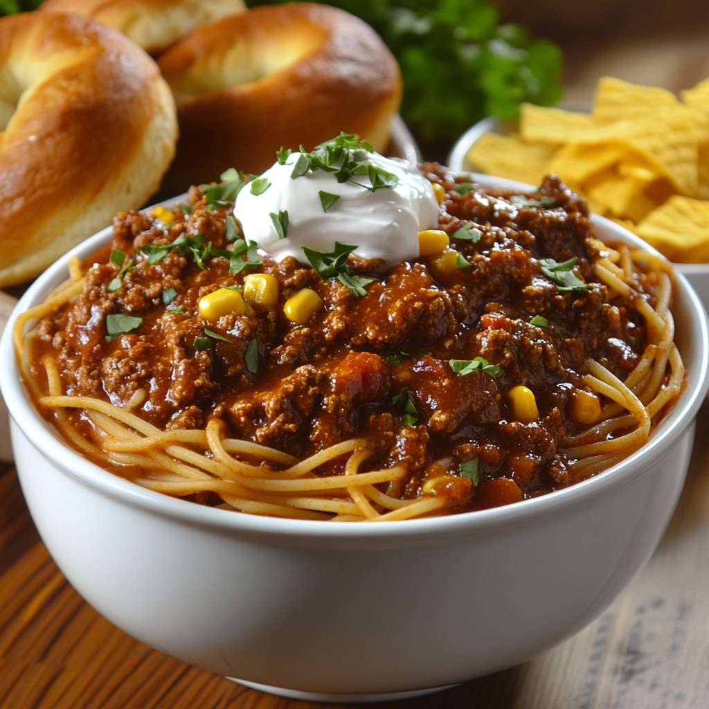 The combination of hearty chili served alongside sweet cinnamon rolls creates a comforting and satisfying meal that’s perfect for any occasion.