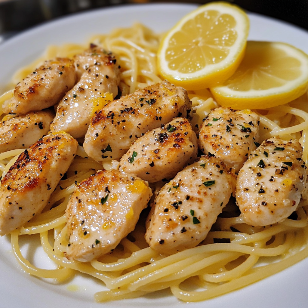 Lemon Garlic Butter Chicken Bites with Savory Parmesan Linguine