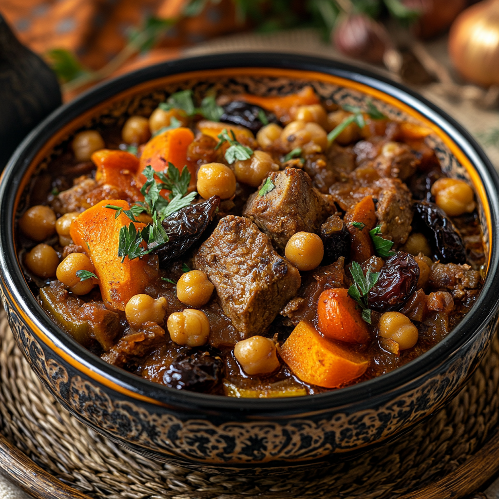Moroccan Lamb Tagine with Prunes, Chickpeas & Spiced Vegetables