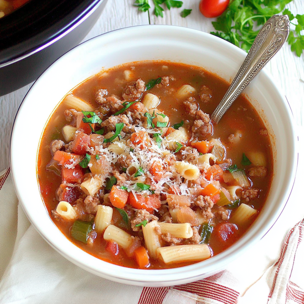 This Pasta Fagioli Crock Pot Recipe is a delightful and comforting dish that brings the essence of classic Italian flavors to your table. Bursting with hearty ingredients like lean beef, beans, and fresh vegetables, this slow-cooked soup delivers rich taste and satisfying texture. The best part? It’s incredibly easy to prepare—just toss everything into the slow cooker and let it do the magic while you enjoy your day. Perfect for cozy family dinners or gatherings with friends, this budget-friendly recipe is sure to impress.
