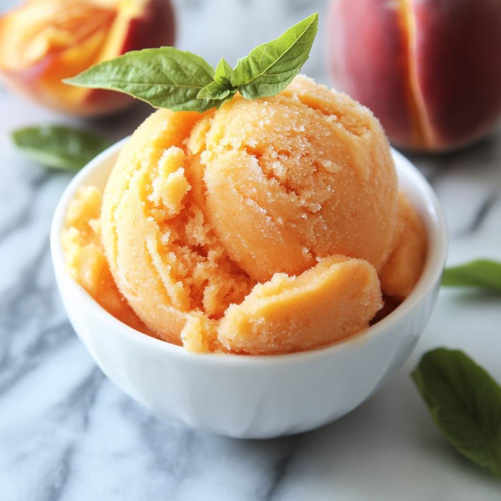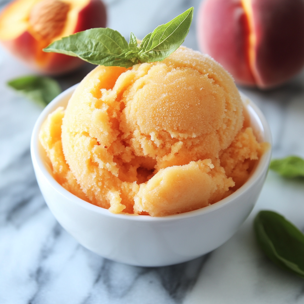 A light, refreshing, and naturally sweet peach sorbet made with ripe peaches, perfect for cooling down on a hot day.