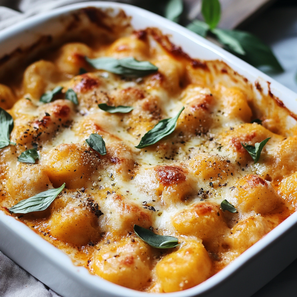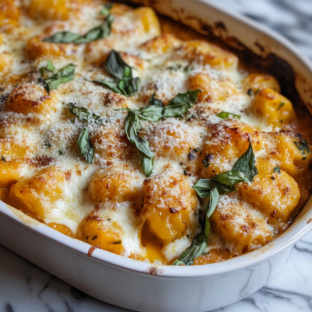 Pumpkin Gnocchi Bake is a comforting dish made with tender gnocchi, creamy pumpkin, and melted cheese, baked until golden and bubbly.