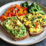 Rainbow Avocado Toast with Scrambled Eggs & Veggie Medley is a vibrant and nutritious breakfast that brightens your morning routine. This dish features creamy avocado spread over crispy whole-grain toast, fluffy scrambled eggs, and a colorful array of sautéed vegetables. Not only does it look appealing, but it’s also packed with healthy fats, protein, and fiber to keep you satisfied throughout the day. With its quick preparation time of just 25 minutes, this recipe is perfect for busy mornings or leisurely brunches alike. Customize it easily with your favorite veggies and spices to create a meal that perfectly suits your taste.