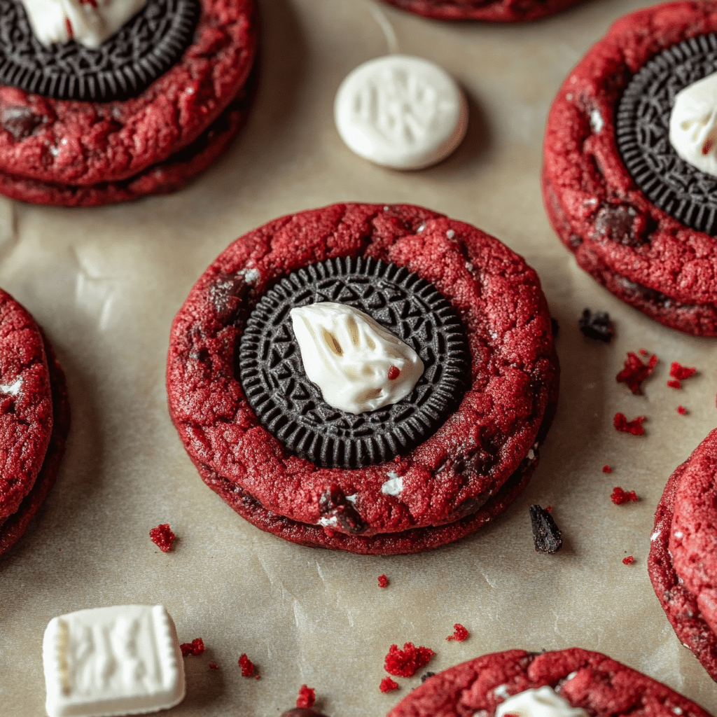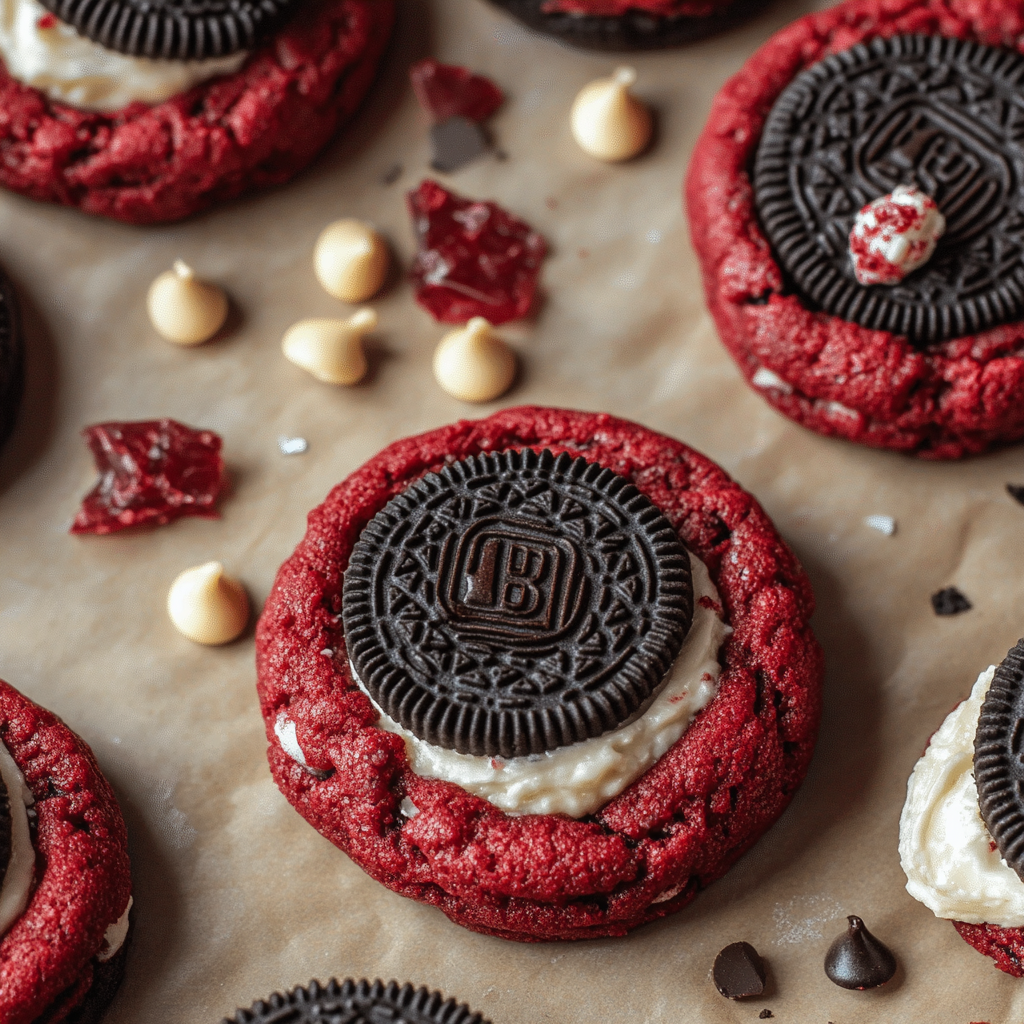 Indulge in the rich and decadent delight of Red Velvet Oreo Cookies. These vibrant cookies combine the classic flavor of red velvet cake with crunchy Oreo pieces and creamy white chocolate chips, creating a mouthwatering treat for any occasion. Whether you’re celebrating a special event or satisfying a sweet craving, these cookies are sure to impress with their striking color and irresistible taste. Easy to make and visually stunning, they are perfect for parties, gatherings, or simply enjoying at home. Get ready to elevate your dessert game with this delightful recipe!