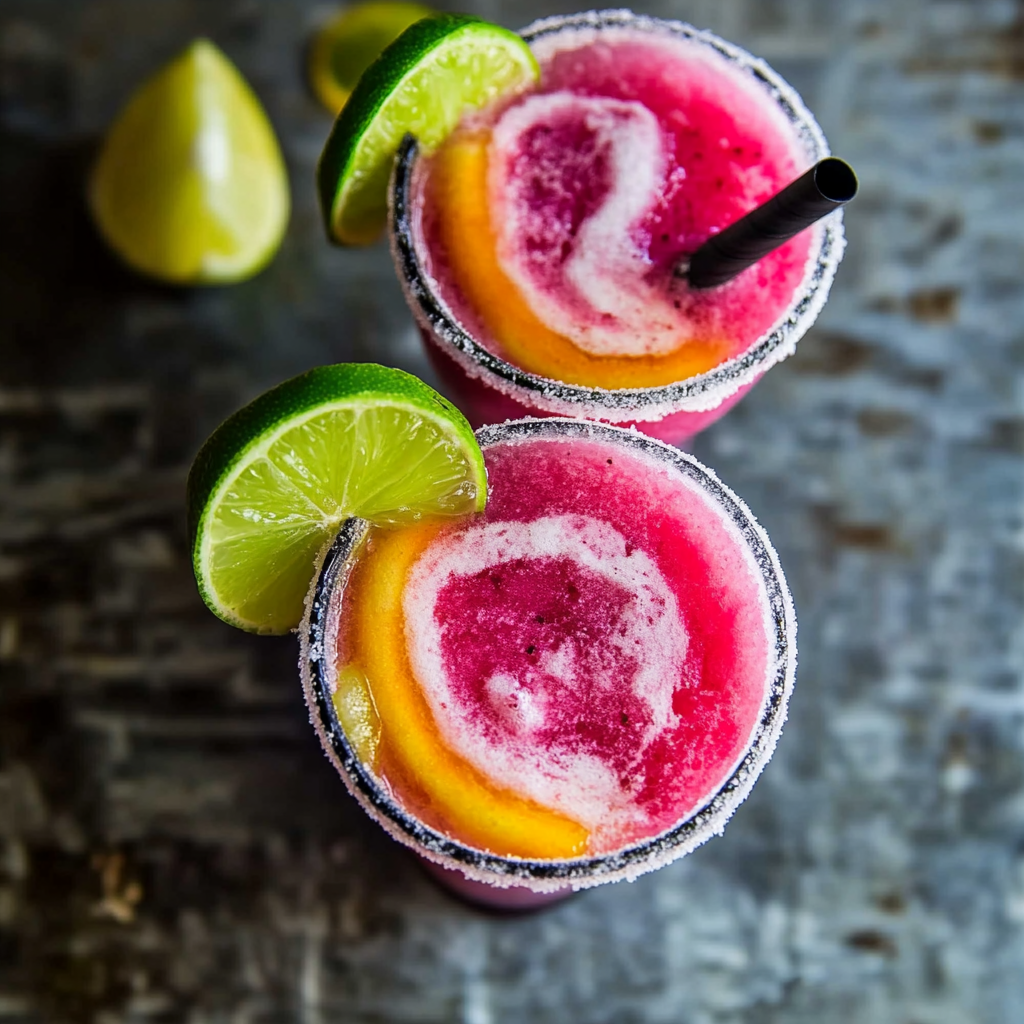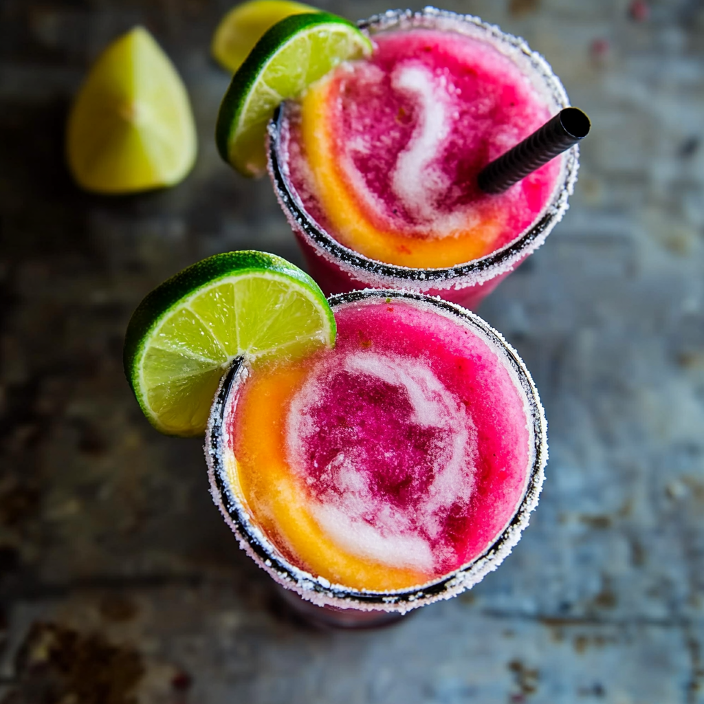 Sangria Swirled Frozen Margaritas are a refreshing treat perfect for warm days or festive gatherings. The vibrant colors and fruity flavors make them visually appealing and delicious.