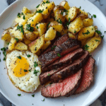 Steak, cheesy scrambled eggs, and herb potatoes create a hearty meal that’s perfect for breakfast or any time of day. This dish is versatile—you can customize it by adding your favorite vegetables or using different meats. Don’t hesitate to give it a try!
