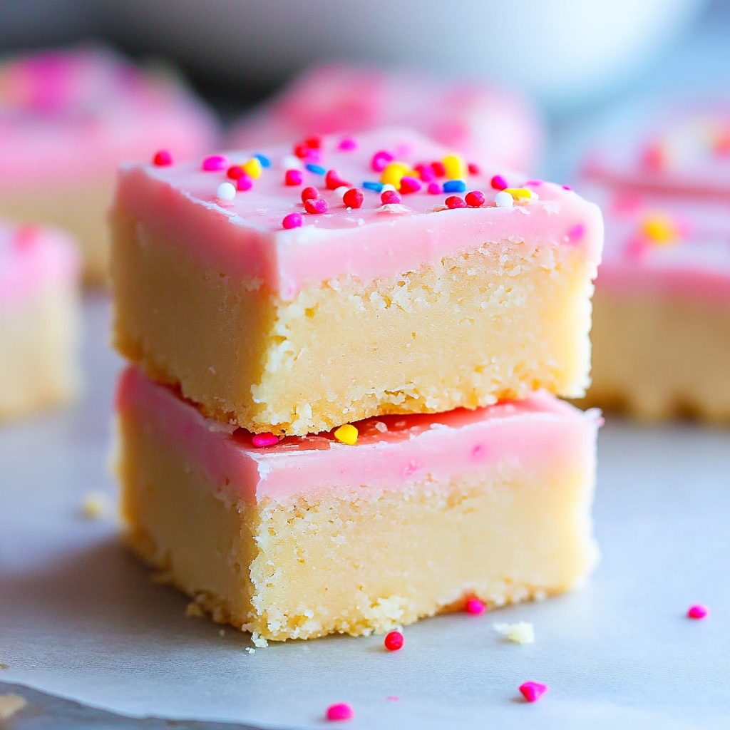 Indulge in the delightful flavors of Sugar Cookie Bars, a thick, soft, and chewy treat that captures all the beloved essence of classic sugar cookies. Perfectly sweet and topped with creamy frosting and colorful sprinkles, these bars are an effortless dessert option for any occasion—from birthday celebrations to simple family snacks. The no-fuss preparation in a single pan makes them a breeze to whip up, ensuring everyone can enjoy these delicious squares without the hassle of rolling dough. Get ready to impress your friends and family with this fun twist on a traditional favorite!