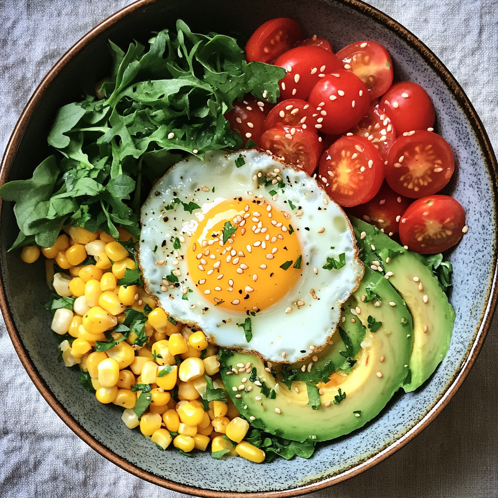 Transform your meals with the Sunshine Veggie & Egg Bowl, a colorful and nourishing dish that’s perfect any time of day. Featuring creamy avocado, sweet corn, and juicy cherry tomatoes, this bowl is topped with a perfectly cooked sunny-side-up egg for a satisfying finish. Ready in just 15 minutes, it’s not only quick and easy but also customizable to suit your taste. Whether you’re looking for a healthy breakfast or a light lunch, this delightful veggie bowl promises to be both delicious and nutritious. Enjoy the vibrant flavors and textures in every bite!