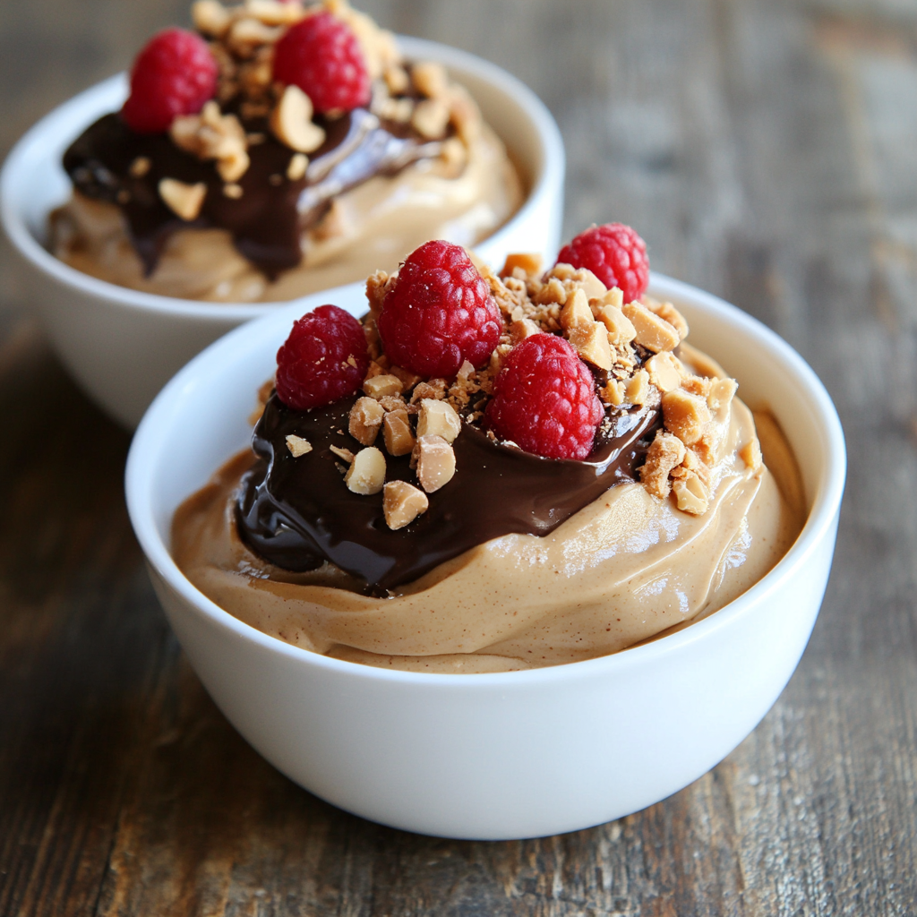 This dessert combines silken tofu with peanut butter and sweeteners, topped with rich dark chocolate ganache for an indulgent yet healthy treat.